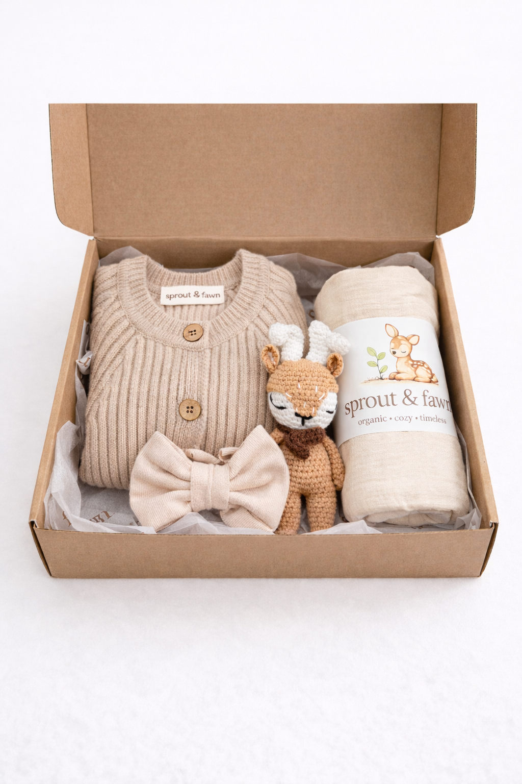At Sprout & Fawn, we believe little ones deserve the gentlest start. Our collection is inspired by nature — soft hues, earthy textures, and pieces that feel calm, cozy, and beautifully simple.